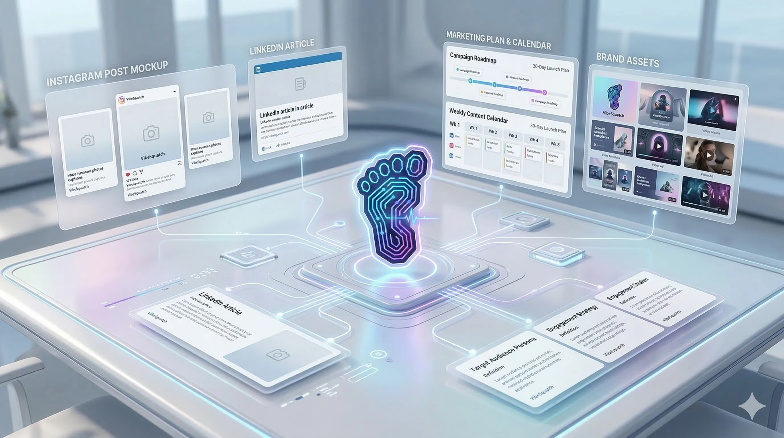 VibeSquatch is an AI-powered brand kit generator and marketing toolkit by AppSquatch. Build your complete brand identity, marketing plans, and social content in minutes — no design skills required. Built for solopreneurs, small business owners, founders, and small marketing teams.